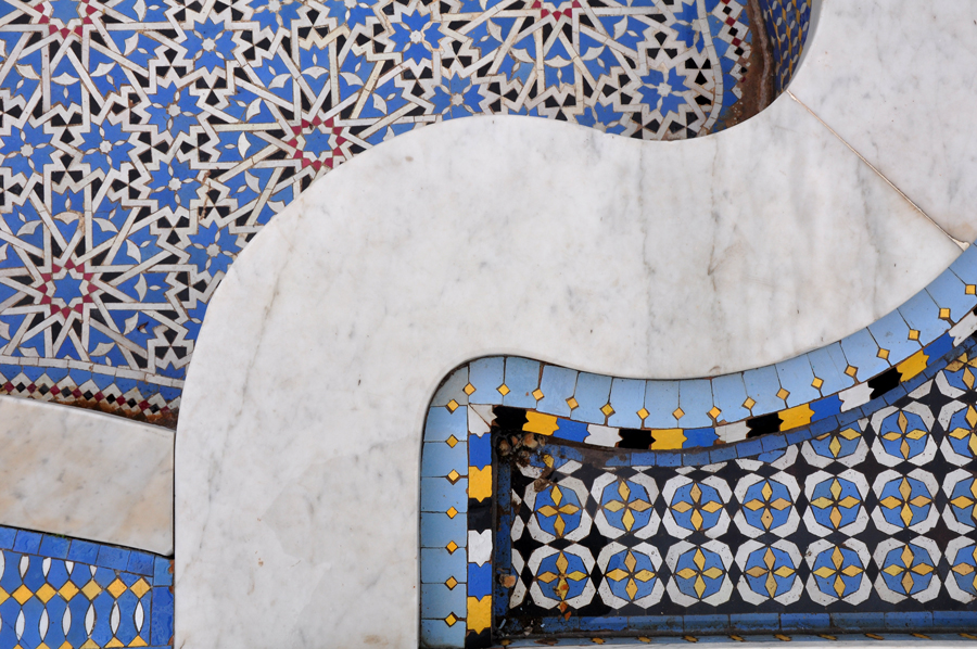 Tile work in a fountain in the unfinished mosque